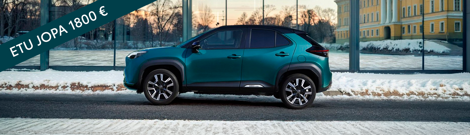 Ketterä Yaris sisältää viimeisintä teknologiaa tarjoten vaivattoman ajokokemuksen. Uudistunut Yaris Cross yhdistää kompaktin kaupunkiauton sulavan ajettavuuden crossoverin monipuolisuuteen ja ajomukavuuteen. Kummassakin autossa on kattava vakiovarustelu. Talvirengasedun lisäksi saat meiltä myös edullisen rahoituksen.